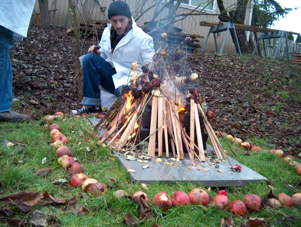 The first head: burned in a ceremonial pyre. Results: Crispy black char, took a rather long time, held shape from skull which would not burn. Smelled reluctantly of pork.